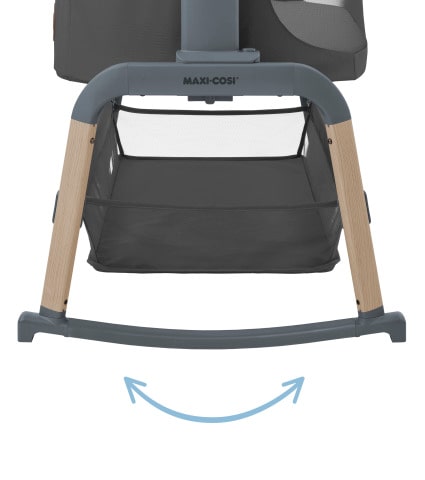 Maxi-Cosi Iora Air bénéficie d'une fonction balancelle pratique pour apaiser facilement votre bébé. Retournez simplement les pieds incurvés pour bercer votre bébé afin qu'il s'endorme.