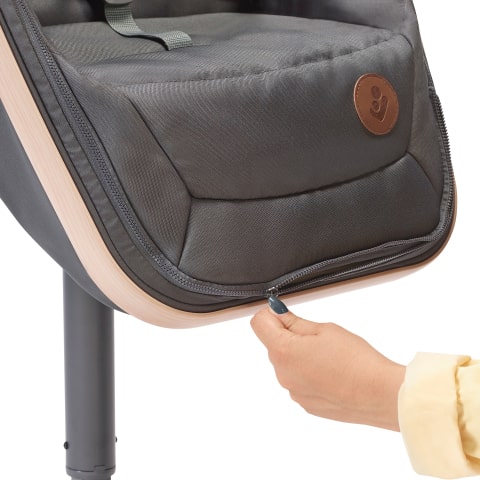 Lorsque votre enfant peut s'asseoir tout seul, la Maxi-Cosi Alba peut être utilisée comme chaise haute. Elle peut être combinée avec le kit repas Alba, qui convient de 6 mois à 3 ans environ (15 kg). Le plateau du kit repas se clipse simplement sur le cadre, tandis que la housse est hydrofuge et lavable en machine, ce qui facilite son entretien.